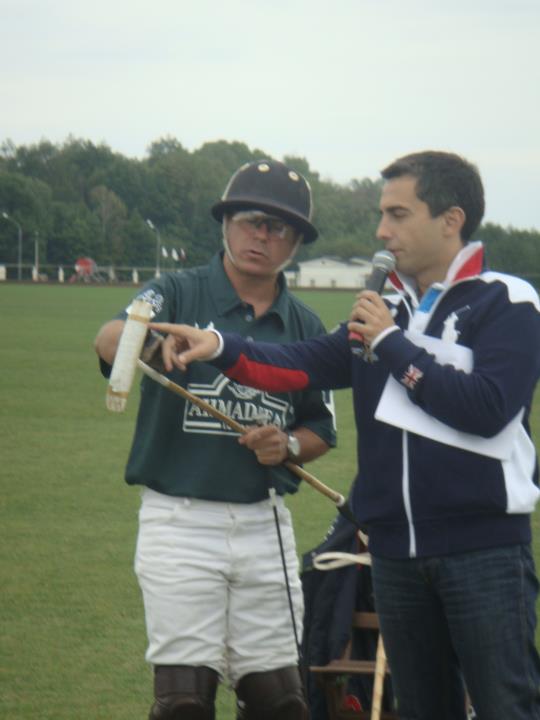 демонстрировал амуницию поло-игрока, основные приемы удара по мячу и рассказывал по