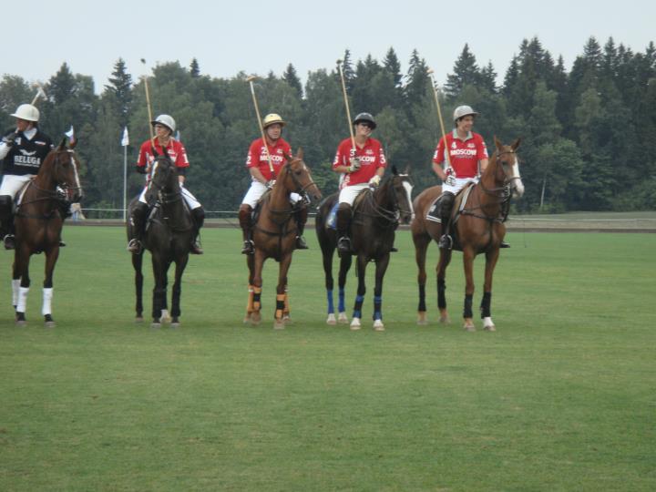 Then came the actual tournament as a fight for third place between teams of Moscow Polo Club (red)