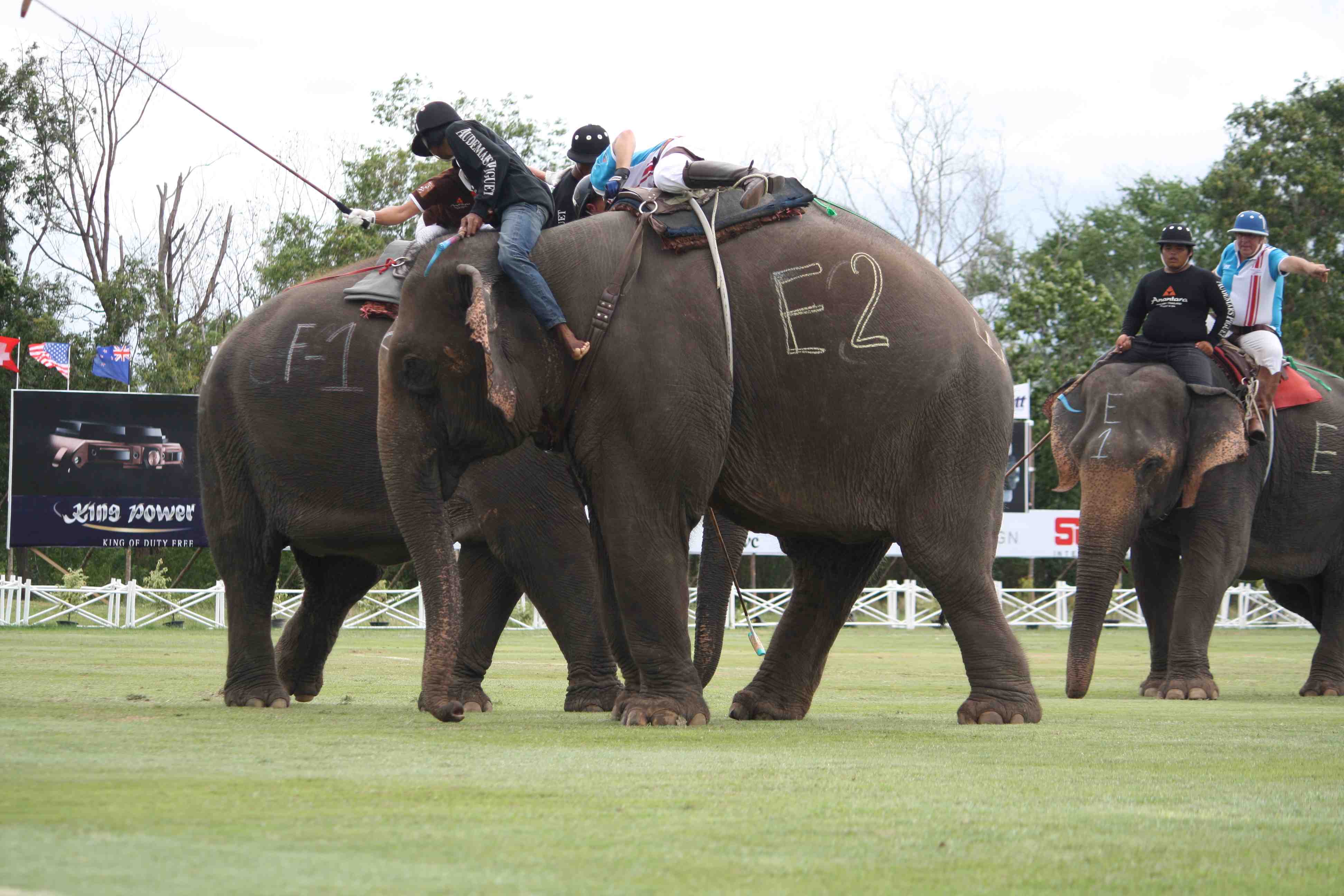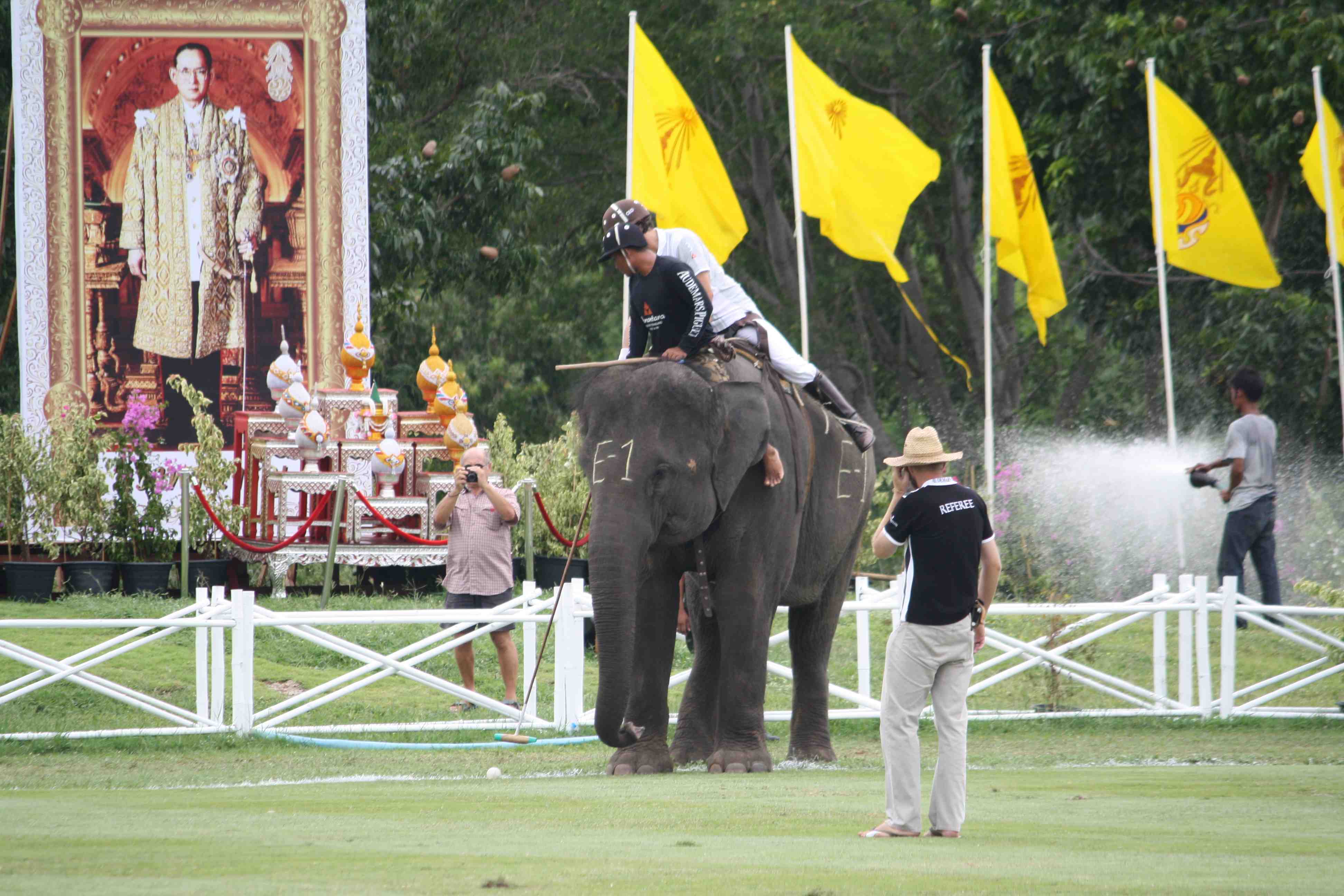 The ground and grass is very much like a polo field. Using a standard size polo ball makes the ball run fast indeed. The movement of the elephants does little damage to a well-laid field ensuring a great pitch during the whole tournament. The only damage done was when some elephants decided to snack on the polo field’s grass. Using their legs, they kicked loose the earth in big patches and used their trunks to pull out the grass. Funny if it wasn’t so destructive !